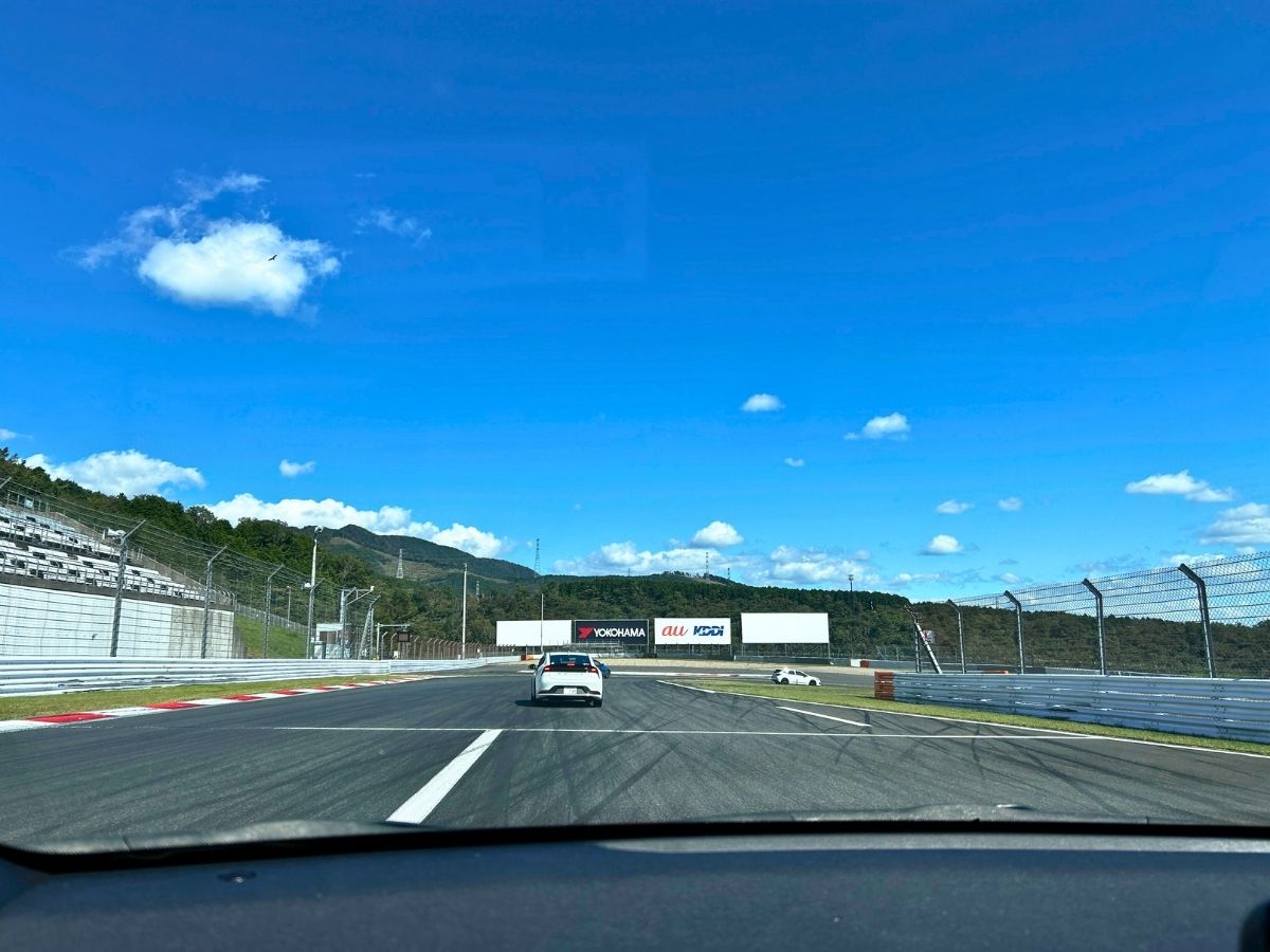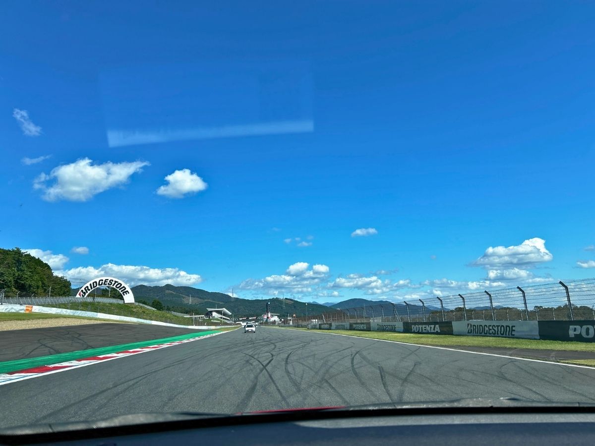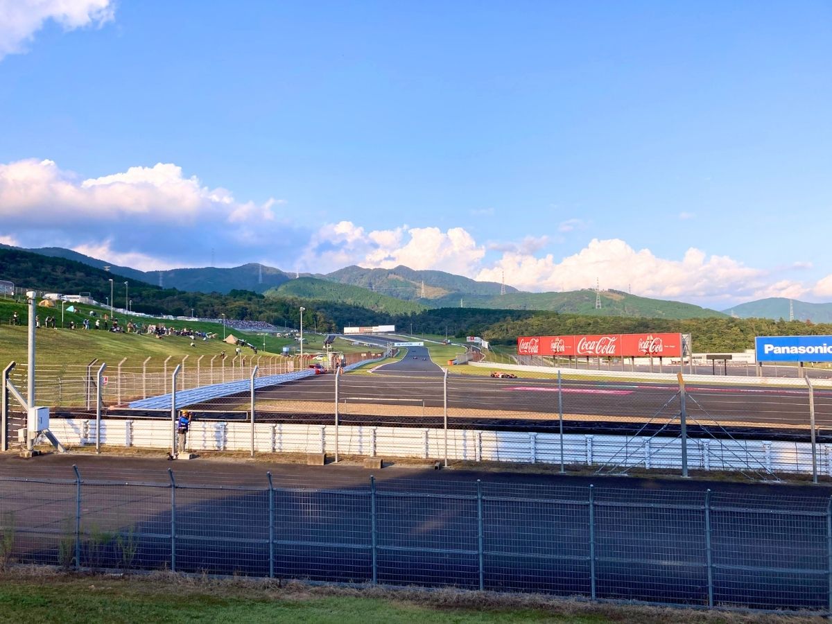 長いメインストレートが特長的で、1コーナーからは下って行く感じ、100Rで強い横Gを受けながらヘアピン的なコーナーを抜け、富士山の方向に坂道を登りながらくねくねしたコーナーを抜け、メインストレートに戻ってくる感じのレイアウトとなっています(ちなみにレース翌日の月曜日に体験走行で3周ほど走ってきました!)
