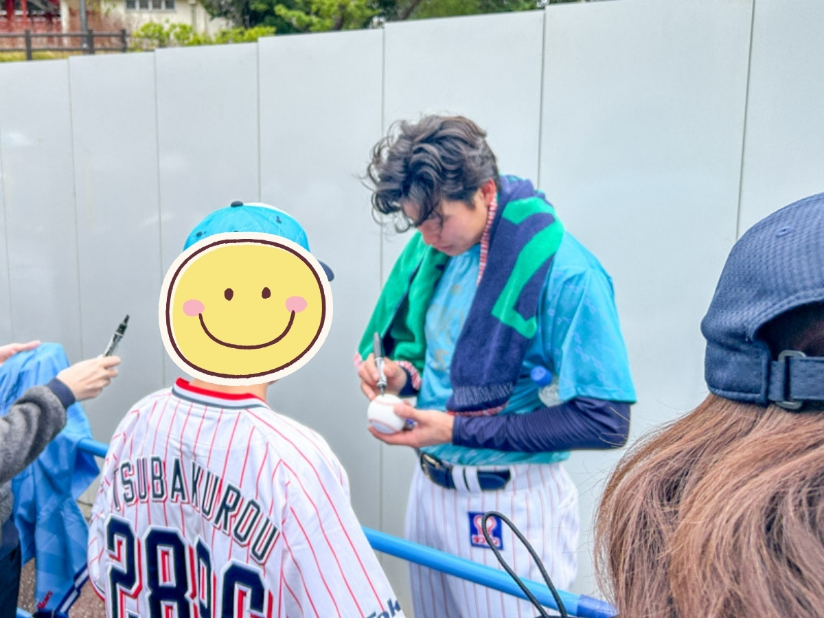 なお、「後ろの方にいたのに最後よくもらえたね」と聞くと、息子曰く「ラスト」と言われたとき、周りの方が子供に譲ってくれたとのこと。ヤクルトファンの方々の優しさにも感謝です。