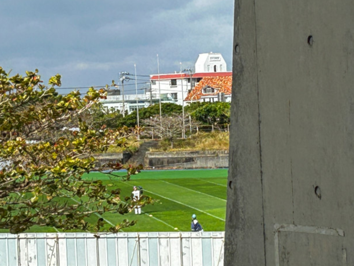 投手のサインをもらいやすいのは、陸上競技場と室内練習場の間。