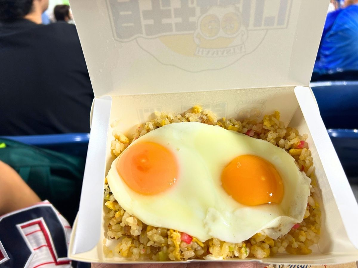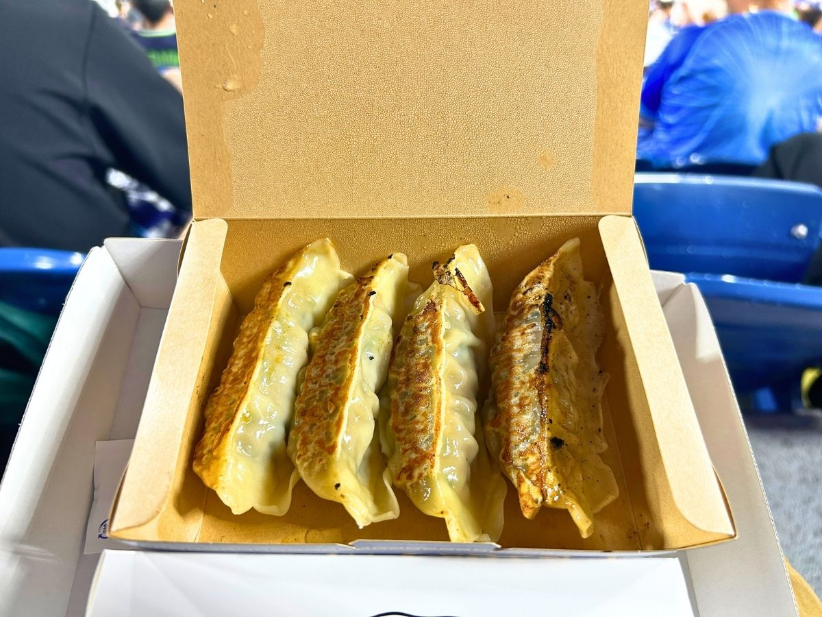 ハマスタ名物の「ベイ餃子」と「目玉チャーハン」を購入。