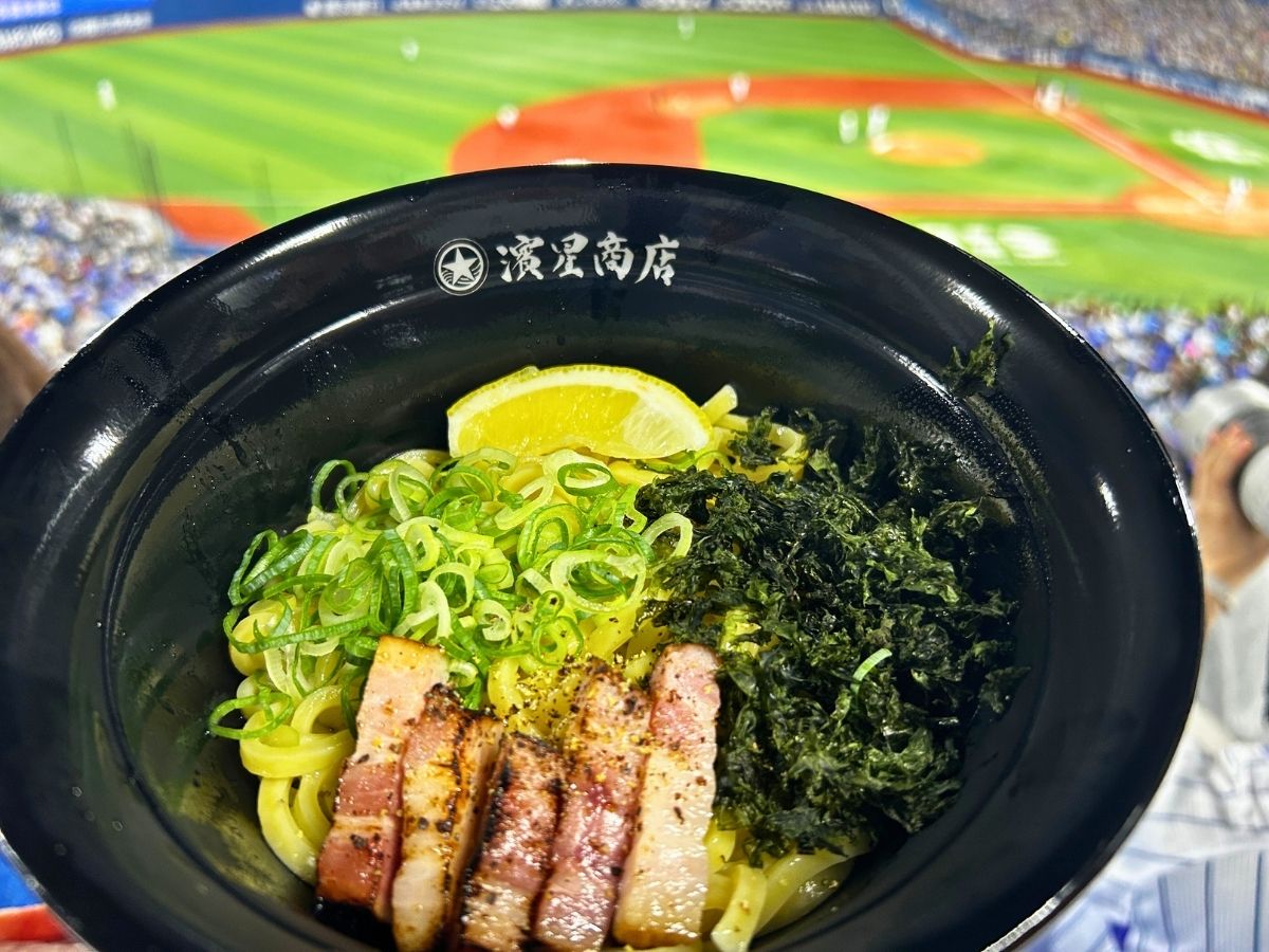 湯河原にある名店「らぁ麺 飯田商店」と、野球観戦でも食べやすいように共同開発したという、汁無しのまぜそば「すたぁ麺」。前の席の人が食べていて、美味しい香りが漂ってきて、つい買ってきてしまいました。美味しかったです!